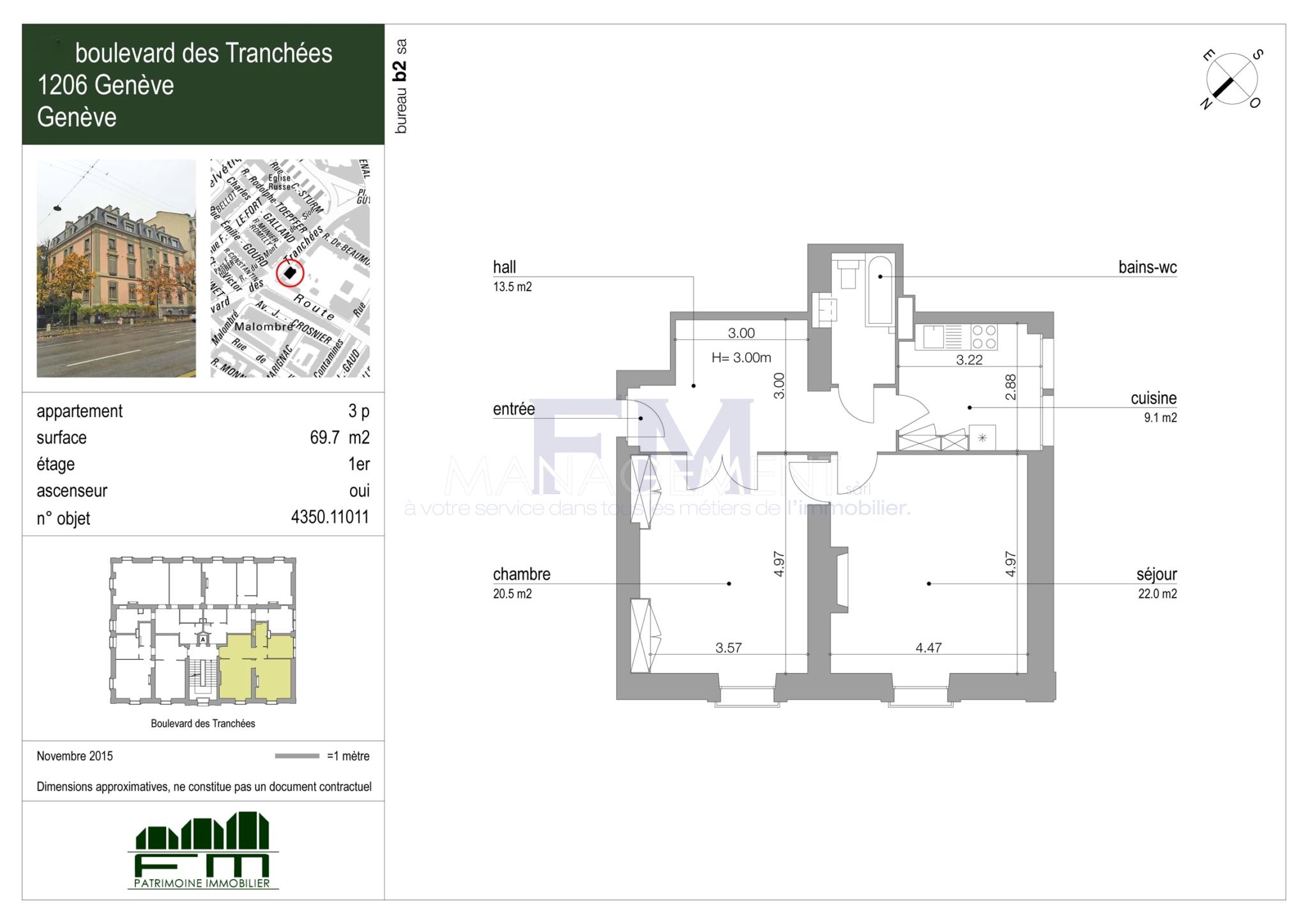 Situé au cœur d’un quartier prisé de Genève, sur le très recherché Boulevard des Tranchées, ce superbe appartement de 3 pièces d’environ 70 m² prend place au 1er étage d’un immeuble ancien de standing, parfaitement entretenu et sécurisé, avec ascenseur.